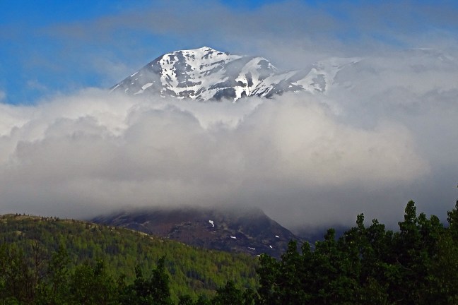 10 PM . . . turning pages in a book while sunshine and rain showers trade places high up among the snowcaps in the Land of the Midnight Sun . . . Life Is Good!