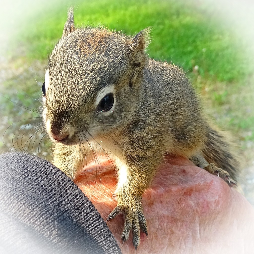 Here’s some ‘Cuties’ and their Moms . . . except for the red little squirrel perched on my “Old” hand.