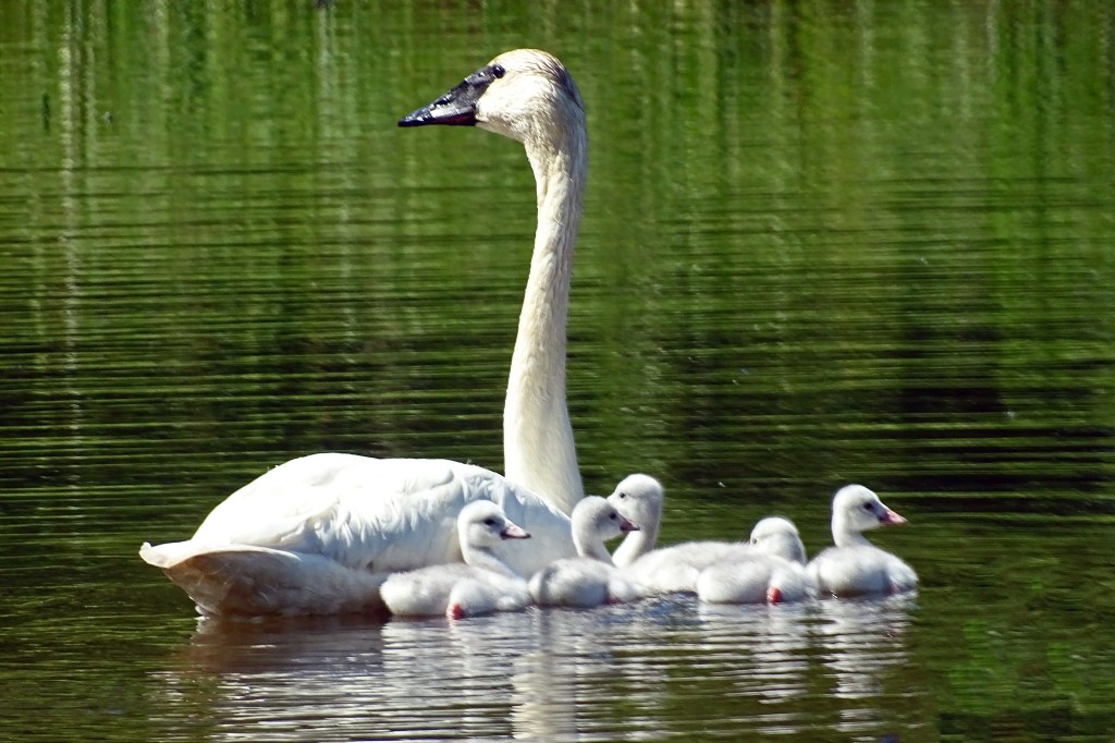 In this tumultuous world and time of global Covid-19 uncertainty, our local Trumpeter Swan parents and their five signets provide a cathartic calm. Watching them has me reminiscing about my own children . . .