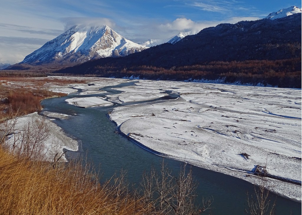 A final Sockeye salmon run spawned, muted beneath frigid waters’ skim ice as it slowly morphed into shimmering crystal designs along Matanuska River’s rocky shores. Surrounded by the Chugach Range’s brilliant white towering cathedrals, I stood in awe . . . eye candy for the soul!