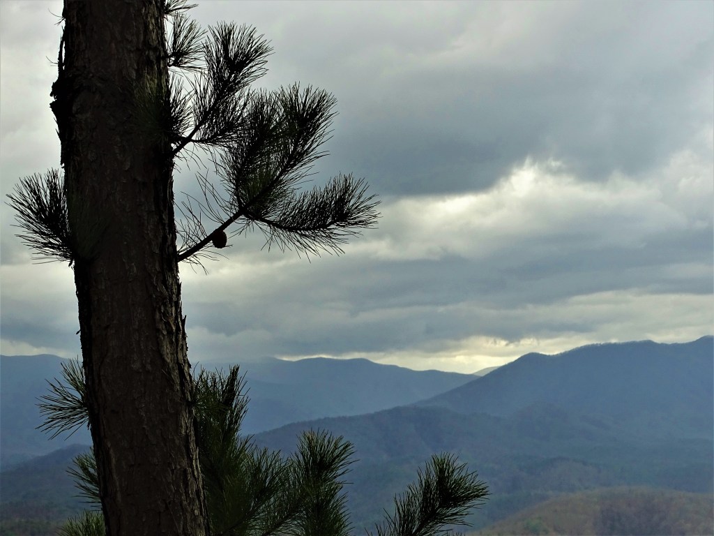Gazing out over the gray shrouded Smokies, a lone pine cone caught my attention. If anything rates a pity party, it’s that solitary pine cone clinging to a branch on the edge of a cliff . . . “Hang in there buddy!” 😊