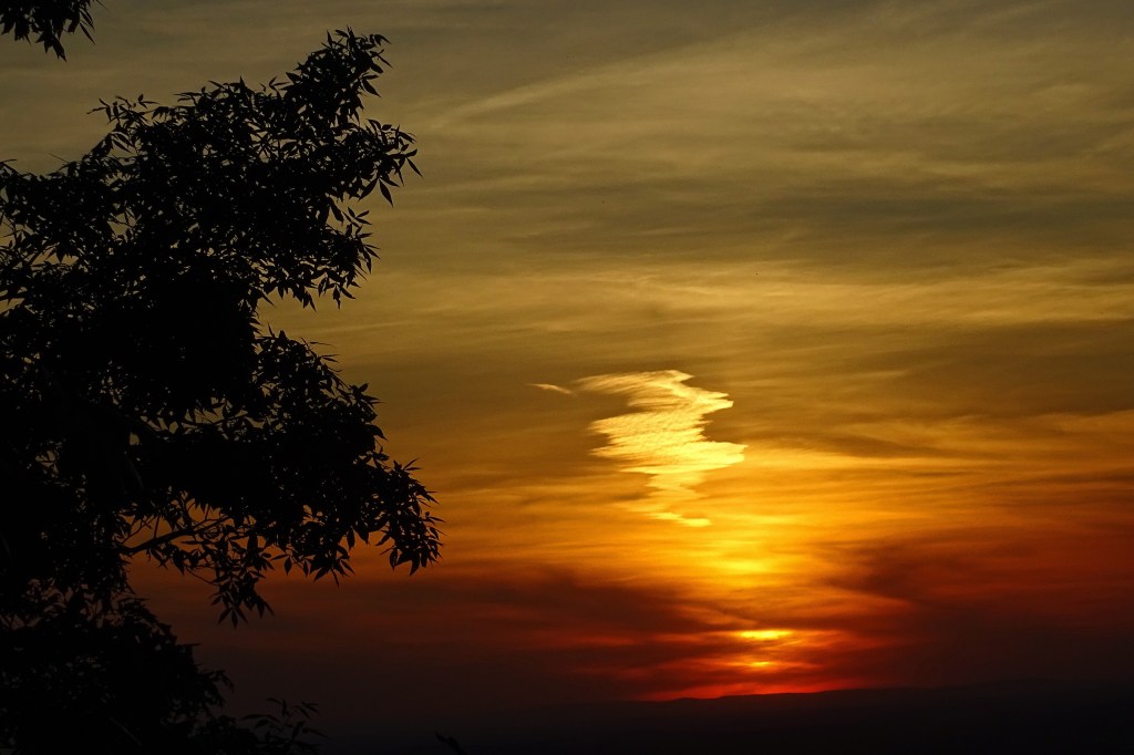 This evening I climbed a mountain and sat in silent awe as He adorned the sunset’s glow with an angel fly-by, assuring me of His presence.