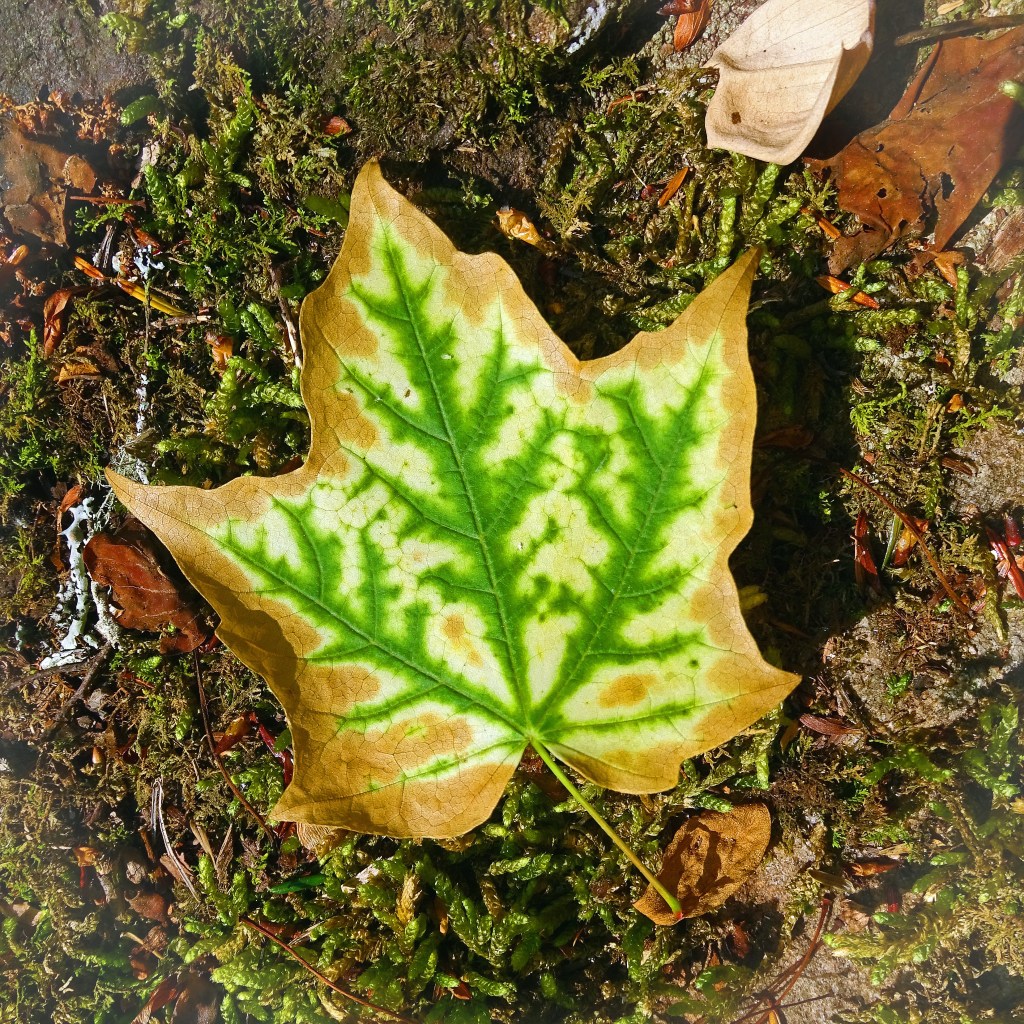 One, a ‘tree’ delicately inscribed on a fallen leaf.