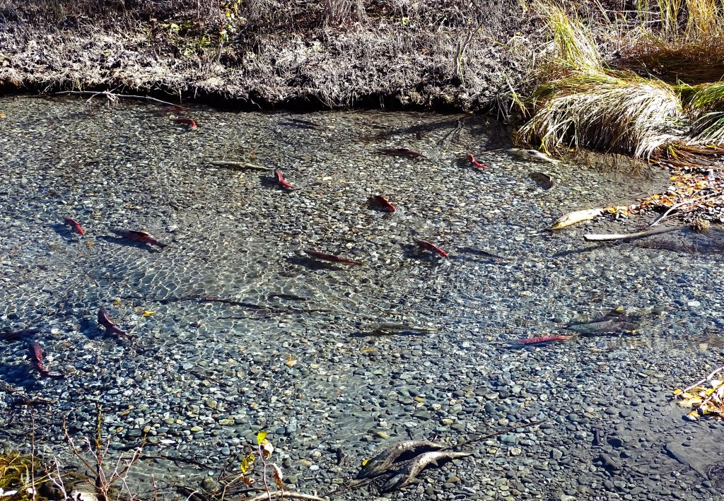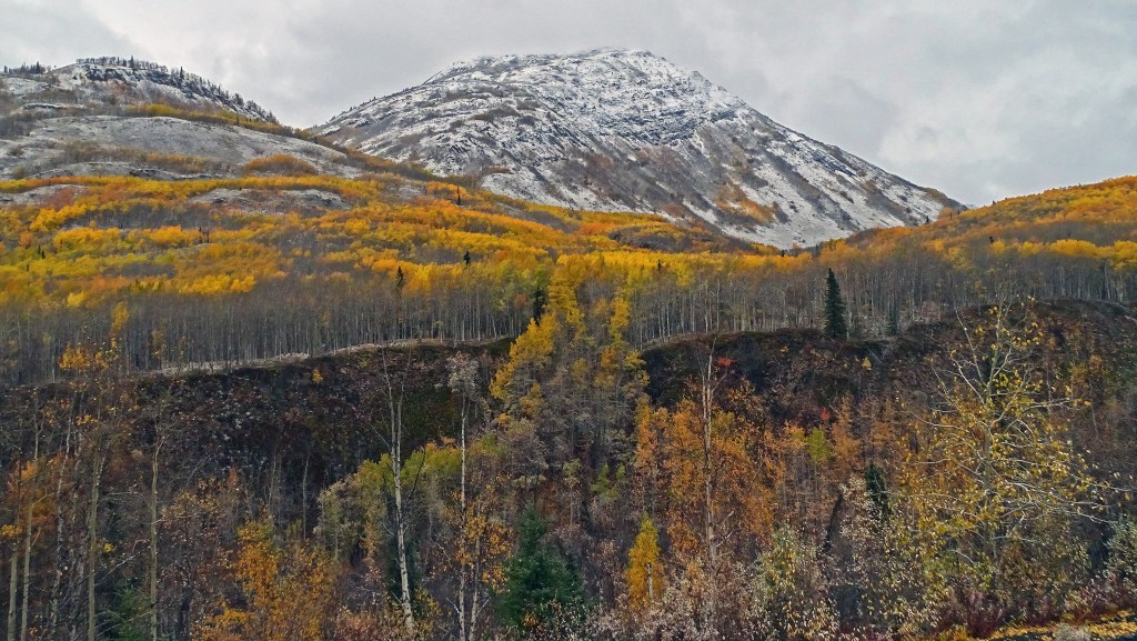 Mother Nature sets her own seasonal calendar  . . . snow ushered in the ‘official’ first day of fall here as the last salmon finished spawning in a stream . . . another day blessed to enjoy in the Last Frontier.
