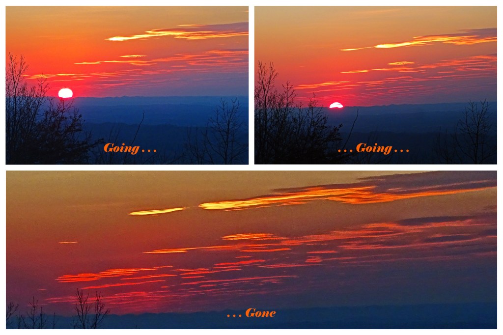 This evening’s glowing sunset held a two-fold  paradox . . . the solemn awareness that everything has an end . . . the calming assurance that each sunset will reborn in tomorrow’s sunrise . . . just as my final sunset will someday be reborn in the Son-rise of my finest forever.