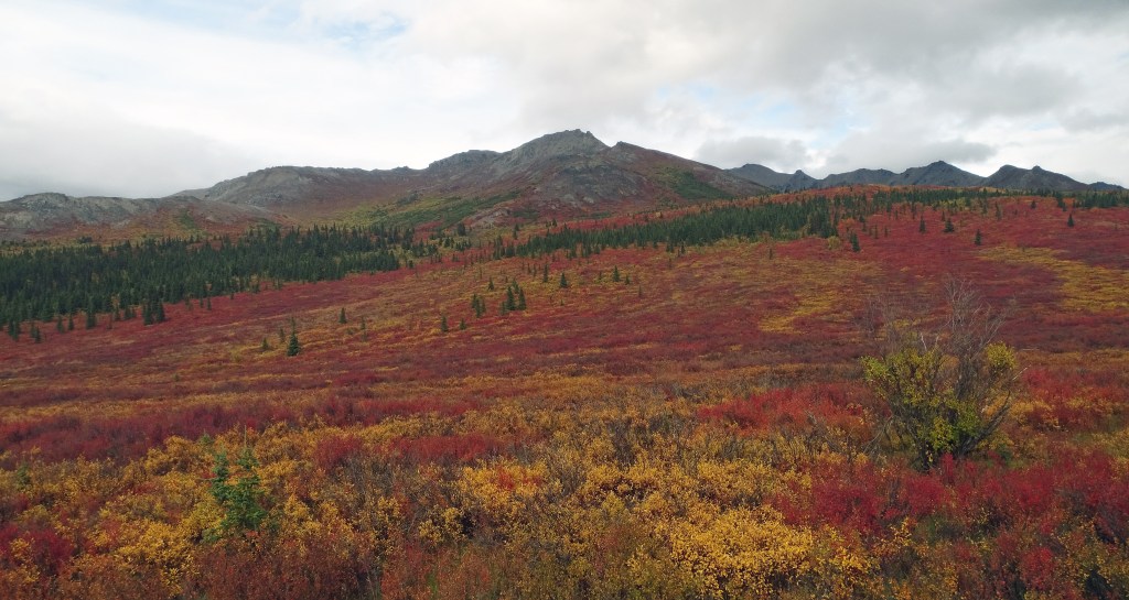 Tundra’s fall color peak is an ephemeral event, lasting but a few days. This year we were blessed to catch this incredible kaleidoscopic explosion of colors at Denali National Park.