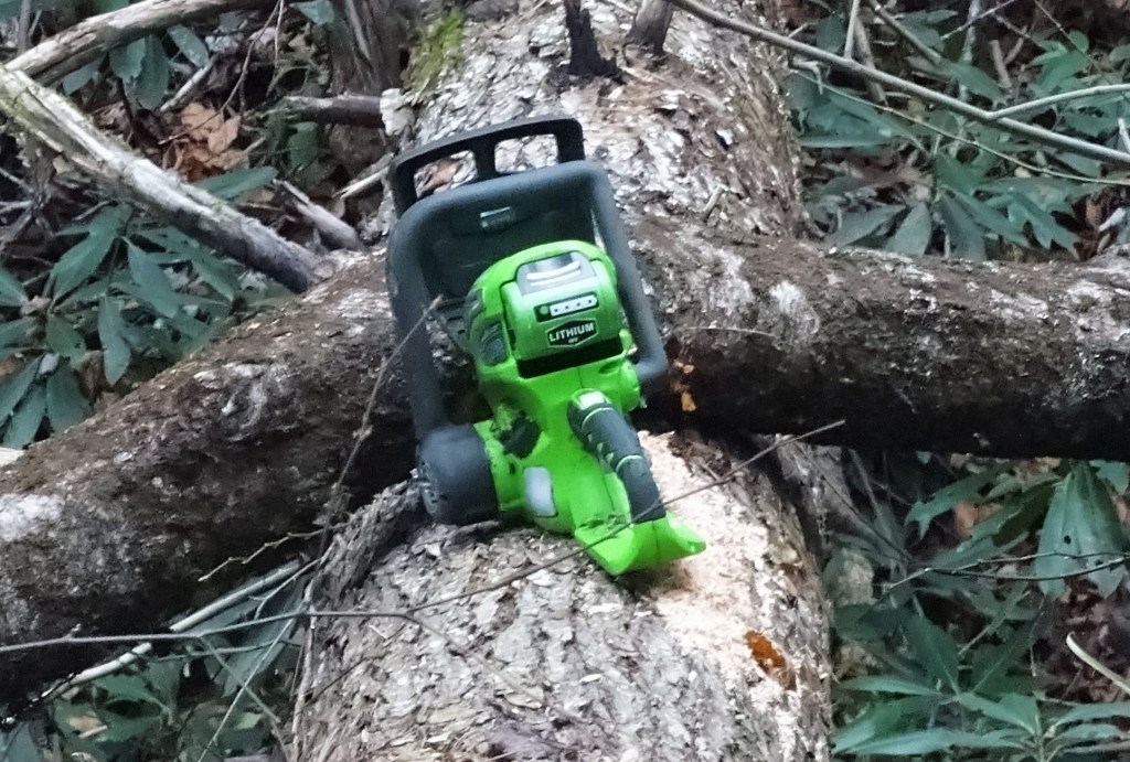 Armed with my trusty little chainsaw I trudged across the ravine. Notching the potentially problematic leaning tree, I confidently made the back-cut which would cause it to fall ‘perfectly’ clear of the driveway among its forest companions