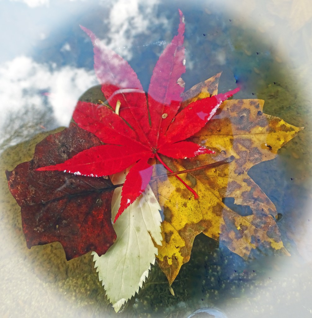 Today’s session was on Harmony, taught by four leaves serenely floating on the pond’s surface . . . they silently sang a refrain from a childhood Sunday School song from long ago . . .