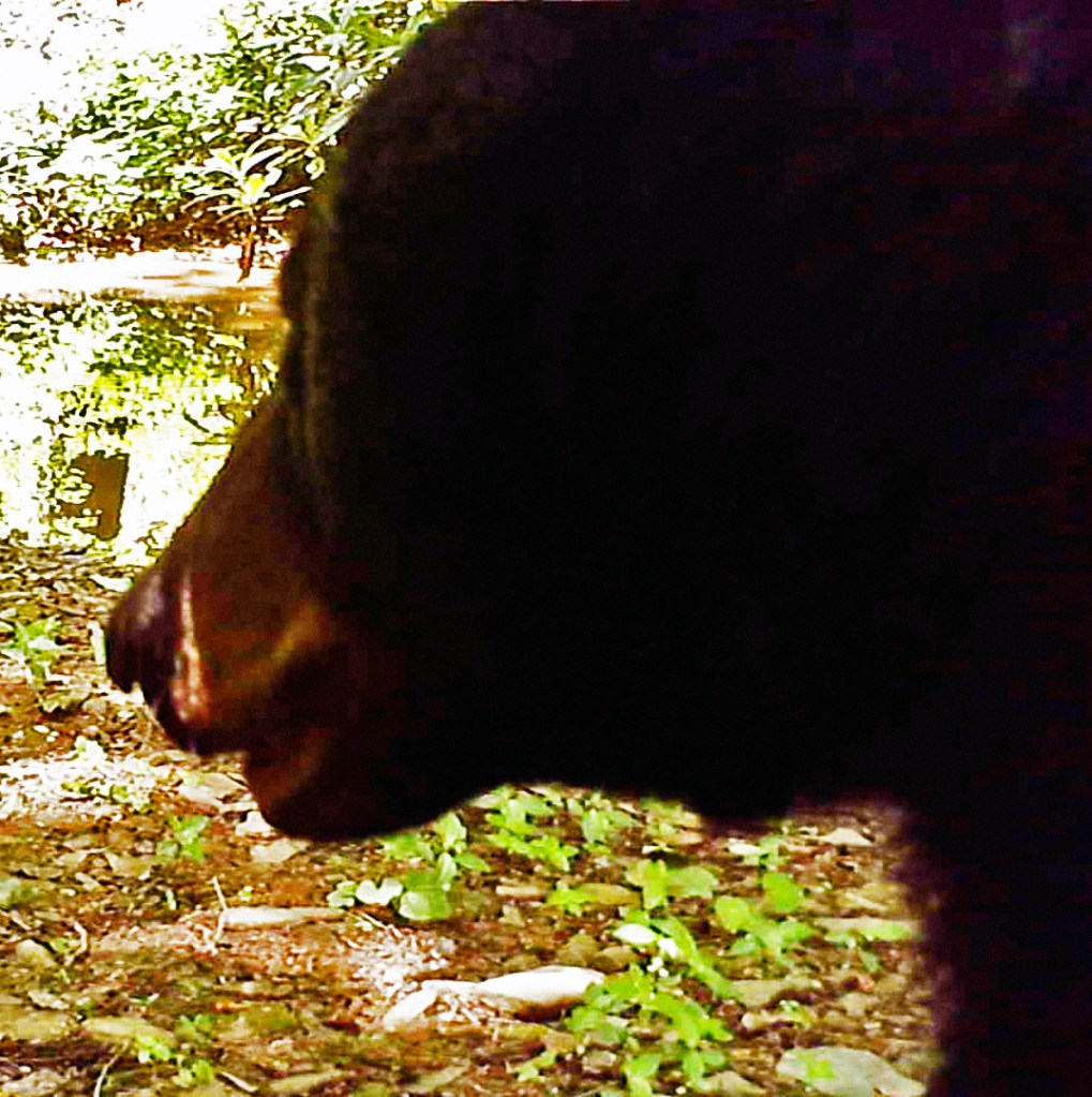 Today Bubba wandered by with a somewhat mangled muzzle and his left eye swollen shut. I thought about asking him what Beefus looked like but, as the pic depicts, he didn’t appear to be in a conversational mood ☹. Perhaps he was upset because, even though he’s a senior bear, his injuries aren’t covered under Medibear . . . I know . . . that was really bad 😊