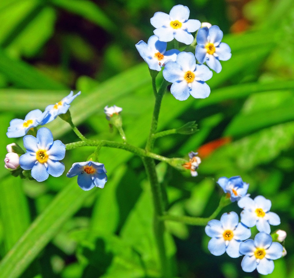 I planned to be in the Greatland today, but I’m still here in the Great Smoky Mountains. Disappointed? Perhaps a tinge. But then, as I sat gazing out over the Smokies, I had a Divine Ah-Ha instant . . . a patch of sunlight highlighted a small cluster of flowers on the forest floor – Forget-Me-Nots.