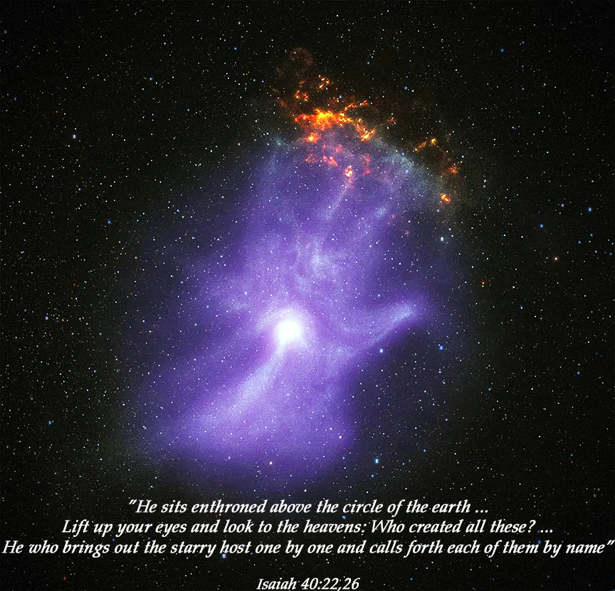 Generally believed to be rapidly rotating neutron stars, pulsars emit pulses of radiation, especially radio waves, with a high degree of regularity. Pulsar B1509-58 is located at the base of the ‘palm’ in this cosmic nebula wind ‘hand’ . . . the hand of God ???