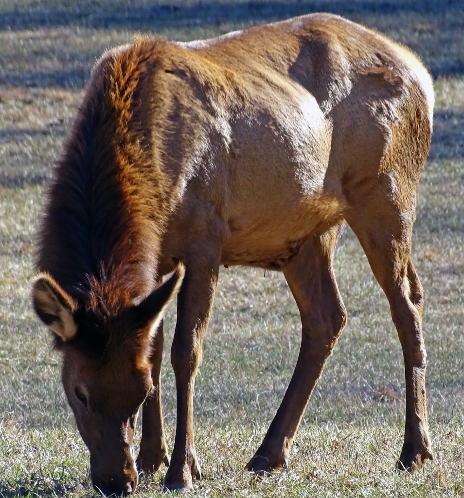 Here’s a few scenes of the small wapiti herd this ole Homo sapiens wapiti 😊observed on his afternoon’s wander, peacefully grazing a meadow together, bathed in bright winter sunshine.