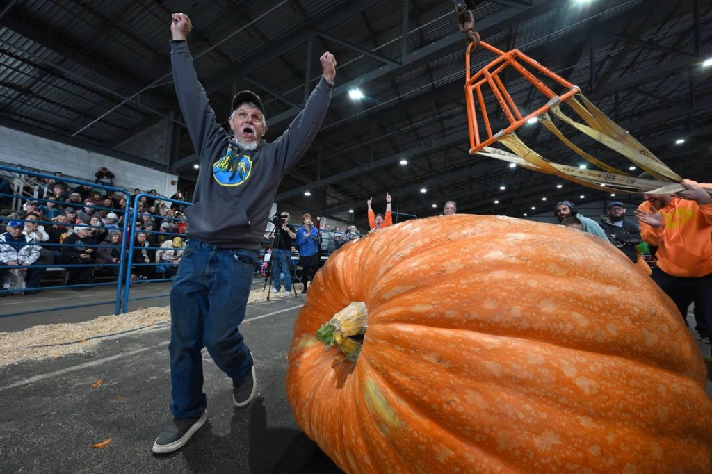 This pic of Dale Marshall and his 2023 Alaska State Fair winning 2,023 lb. pumpkin didn’t ‘squash’ his record 2,147 lb. behemoth of last year, but he appears somewhat satisfied.