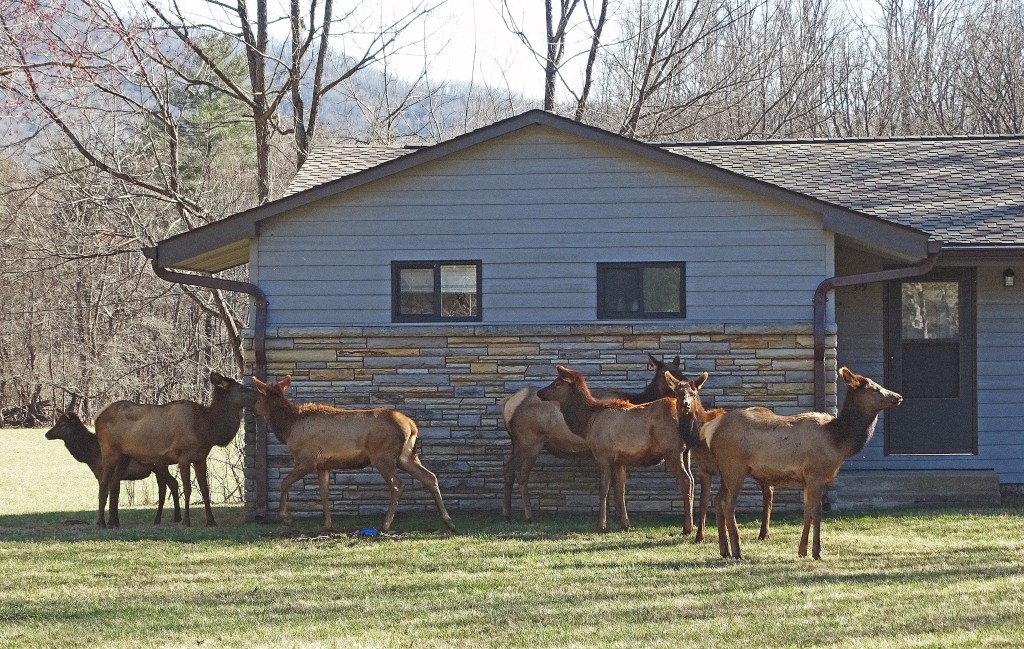 We headed up over the mountain to Cherokee, NC hoping to locate some of the Cervus canadensis roaming the forests there. In 2001 the National Park Service reintroduced 52 elk into Great Smoky Mountains surrounding Cherokee, and they are thriving. The herd now numbers over 200 . . . Mother Nature smiled on us and we found a few of them.