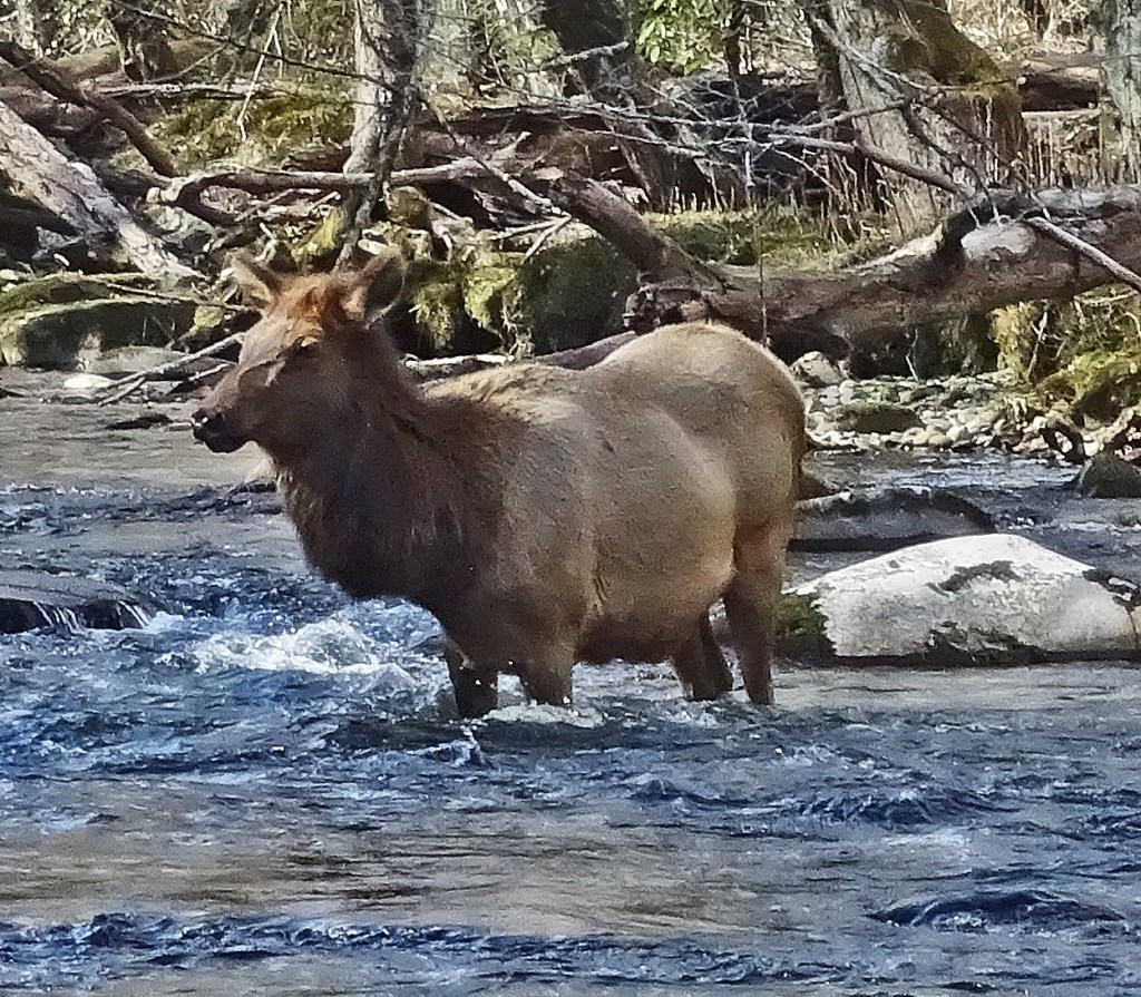 A wander along the pristine Oconaluftee River a bit later discovered a group of a dozen elk, with 3 cows heavy with calf wading in the cool stream to mitigate the heat . . . sure glad I’m a bull 😊