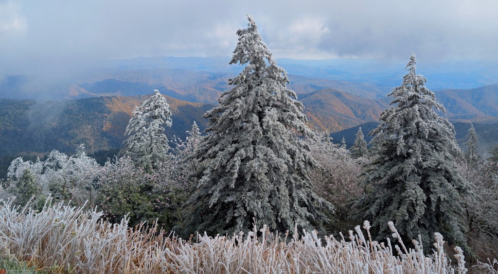My oldest daughter Karin spent few happy days together with us 2 ole duffers last week. She got to see Smoky Mountains spectacular fall colors and the pristine beauty of winter’s first snow on the mountain tops in the same day. Here’s a few pics what was ours to enjoy in the special corner of His creation.