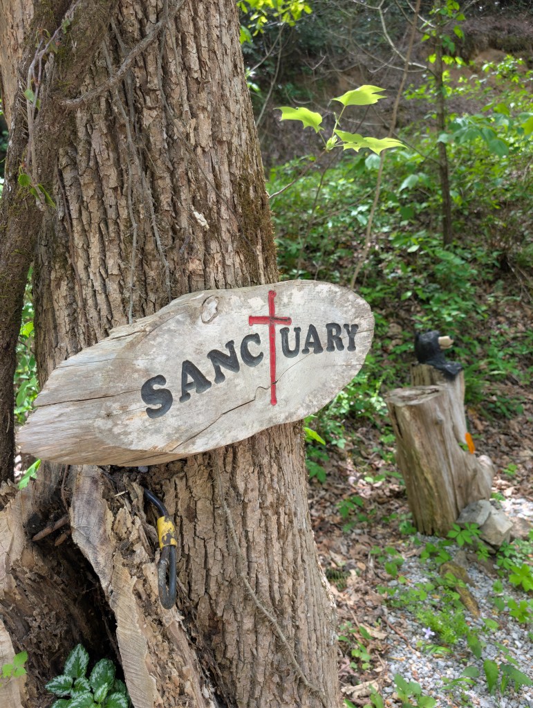 Here at Sanctuary up on the mountain – down in the ‘holler’ – over the ‘crick’ consensus was finally achieved. It was determined that enhanced FCW monitoring of Smokey’s behavior activities would immediately be implemented.  Since the Screech Owls had decided to relocate after the break-in, the Woodies are now considering moving into the refurbished small tree house to raise their new family here. Once again, all is well at Sanctuary😊